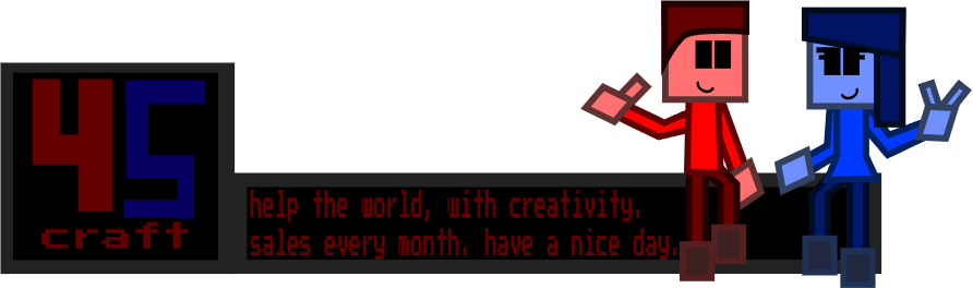 hey I'm crafting457400, this is 45craft games, the kindness video game company that makes many digital items, there are many games from this company even the 4 main ones. there's always gonna be discounts on the digital items and let me tell ya, it makes them so cheap. we even have special parts of the company you can explore them. we also allow you to make fan art or fan games or fan made stuff about the games we made. we have multiple items, so what are you waiting for get one of our games or mods or anything. we care about people and people with mental problems and disorders. we do much as we can to help people out with issues.